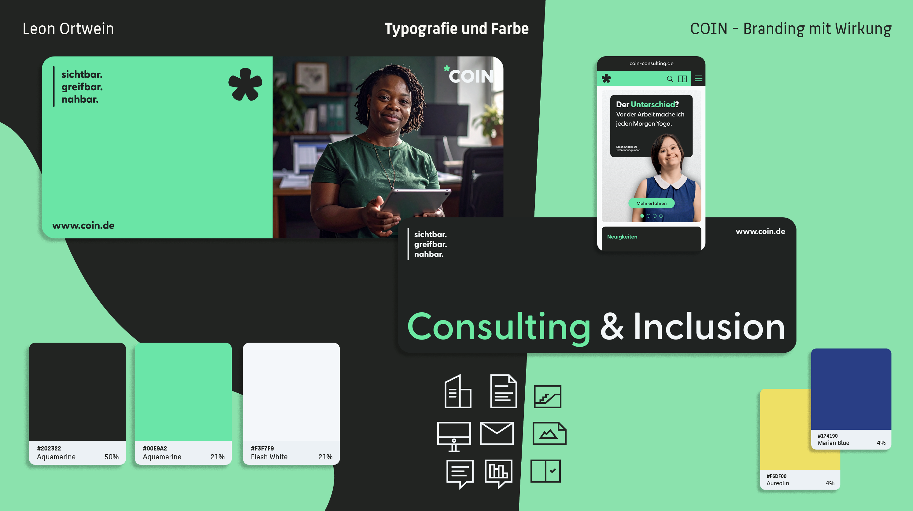 Besonders wertvoll war dabei die enge Kooperation mit dem realen Kunden COIN, in deren Rahmen wir Workshops durchführten, strategische Grundlagen erarbeiteten und die Marke Schritt für Schritt entwickelten.