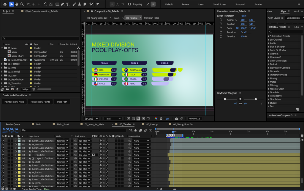 Entstanden sind unter anderem Intro, Scoreboard, Clock, Tabellen, Team Line-ups, Infoboxen, Titel und Transitions, die in einem Casefilm markenkonform zusammengeführt und präsentiert werden.